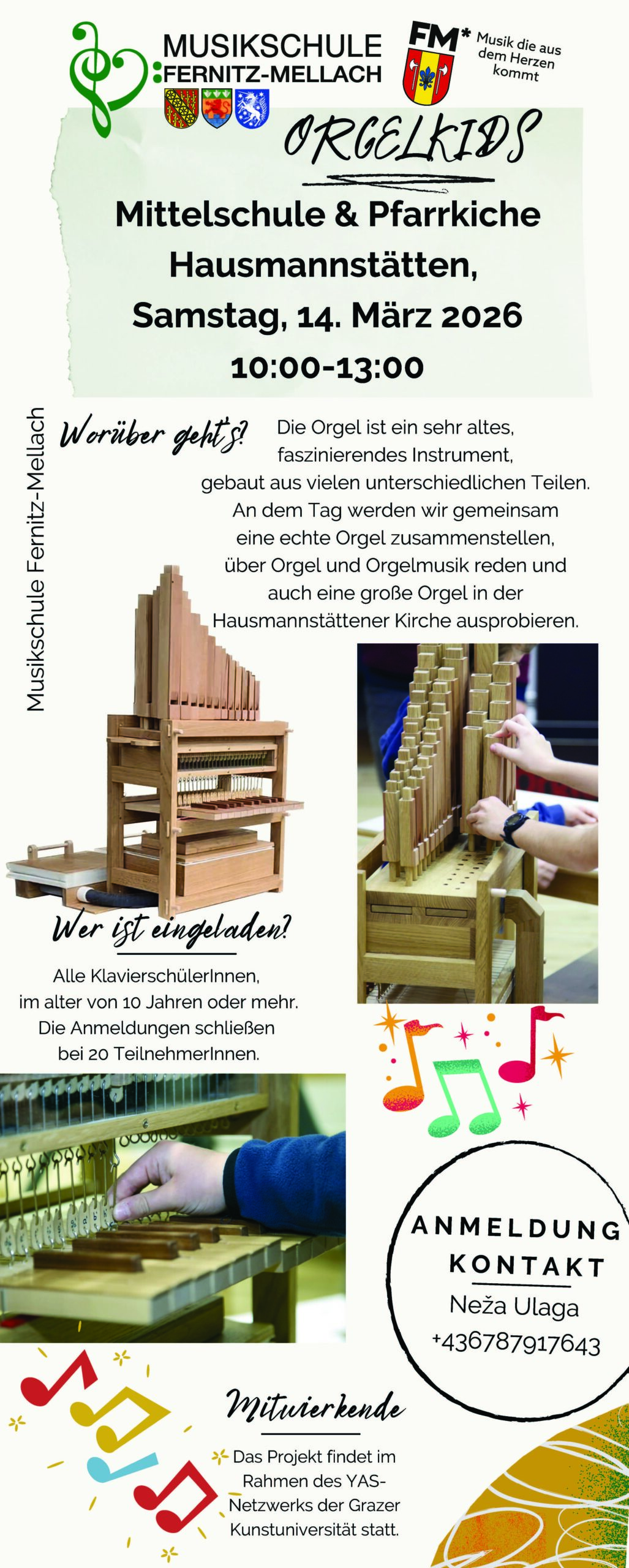 Mit diesem Workshop möchten wir das Interesse und die Begeisterung für Musik und insbesondere für die Orgel wecken – ein faszinierendes Instrument mit großer Tradition und spannender Technik!